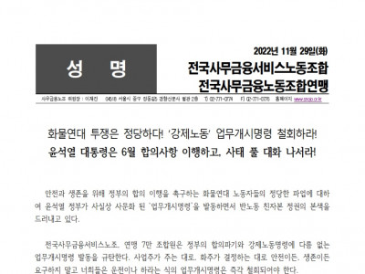 [전국사무금융노동조합연맹]_화물연대 투쟁은 정당하다! '강제노동' 업무개시명령 철회하라!