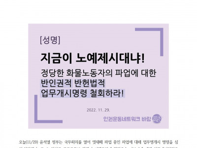 [인권운동네트워크 바람]_지금이 노예제시대냐! 정당한 화물노동자의 파업에 대한 반인권적 반헌법적 업무개시명령…