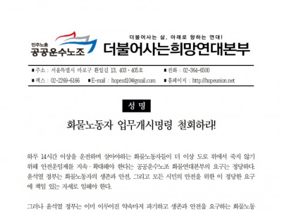 [희망연대본부]_화물노동자 업무개시명령 철회하라!