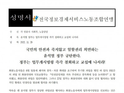 [사회진보연대]_윤석열 정부는 업무개시령령 철회하라