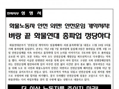 [금속노조]_화물노동자 안전 외면! 안전운임 개악저지! 벼랑 끝 화물연대 총파업 정당하다
