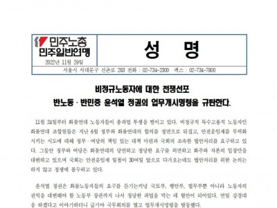 [민주노총 민주일반연맹]_비정규노동자에 대한 전쟁선포 반노동.반민중 윤석열 정권의 업무개시명령을 규탄한다.