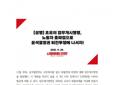 [사회주의전진]_초유의 업무개시명령, 노동자 총파업으로 윤석열정권 퇴진투쟁에 나서자!