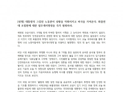 [민주노총]_업무개시명령이 아니라 상황을 파국으로 몰고 간 데 대한 사과와 기한과 차종 확대를 포함한 안전운…