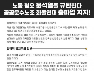 [금속노조 현대중공업지부]_노동 혐오 윤석열을 규탄한다 공공운수노조 화물연대 총파업 지지!
