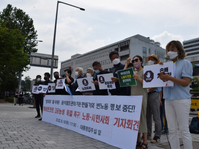 220818_'법대로'를 내세운 윤석열정권의 자본 편들기와 반노동 행보 중단! 하이트진로 고공농성 해결 촉구…