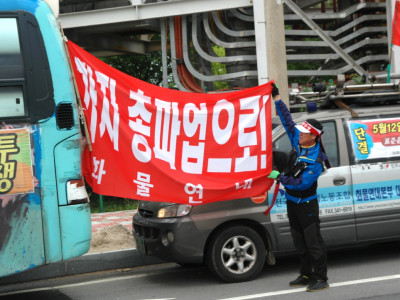 4월30일 전국순회선전전을 전남지부에서 실시하였습니다. 여천공단,순천하이스코,태인동연관단지,포스코,광양컨테이너부두에서 ..