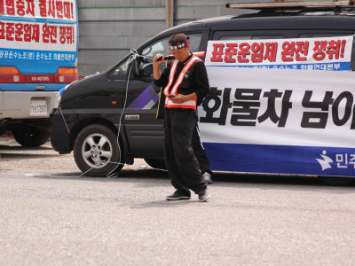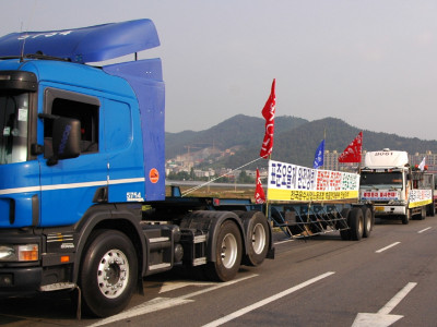 물류를 멈춰 세상을 바꾸자! 표준운임제 쟁취하여 생존권을 쟁취하자! 반민중 반노동 이명박정권 퇴진시키자!