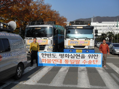 경상남도 기금과 민간기금조성으로 통일쌀보내기를 추진중 통일부의 불허로 전면취소되고 1차로 2대분량 지원승인 받아서 출발합니..