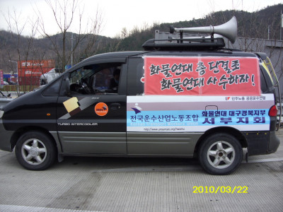 새만금칼바람에 모두들 피곤한 모습이다 전북지부의 선전전을 모두끝내고 고속도로를 달려 도착한곳이 청주 이곳부더 충청도 강원도..