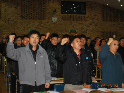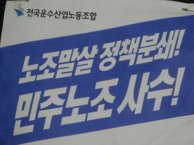 처음이라 낮설구 어색하지만 운수노조 깃발아래 우리는 하나다 라는 조합원동지들의 하나된 모습...