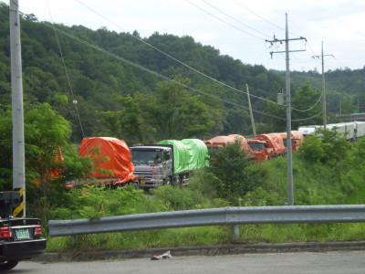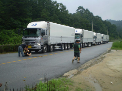 농로에 집결해서 대기중인 통운차량. 연대의 자가용에 막혀 못 움직이고 있다.