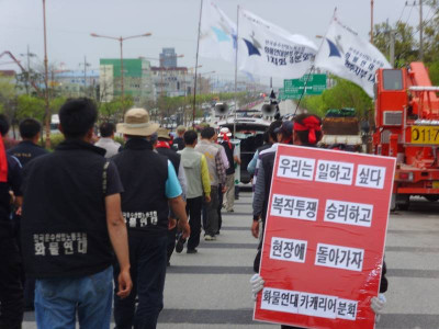 현재 기아 카캐리어(완성차 운송 트레일러)조합원들은 일방적인 계약해지에 맞서 투쟁중에 있다. 조합원들은 서경지부 서남부지회..