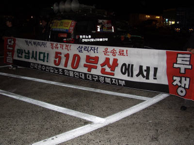 마무리 집회 중이다. 운임이 개판친다. 적자인생 된 지 오래이다. 당장 생계는 고사하고 큰차 할부도 못넣게..