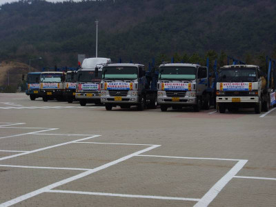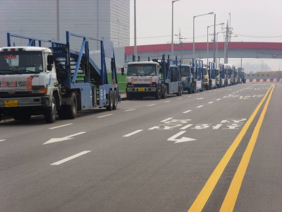 서경지부와 광주지부 카캐리어 조합원들이 평택항에 차량을 집결한 모습