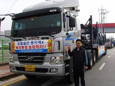 일방적인 계약해지 철회에 맞서 동조 파업을 하고 있는 같은 회사인 현성 조합원 동지의 차량이다. 세달의 시간이 흘렀지만 이..