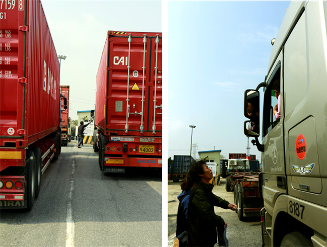 <ICD진입하려는 차량들이 줄지어 서있다.>