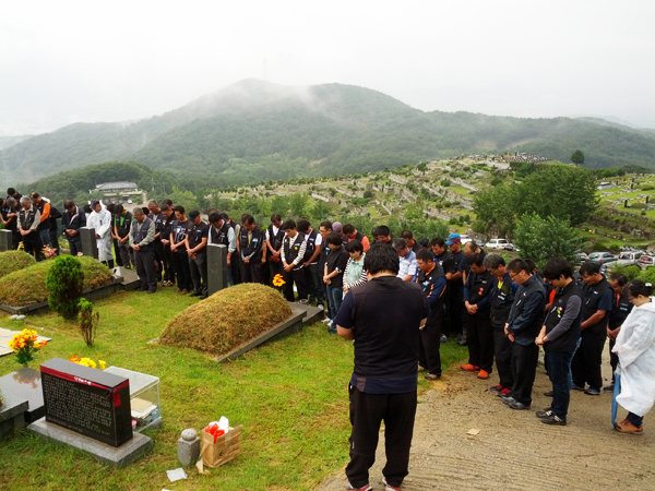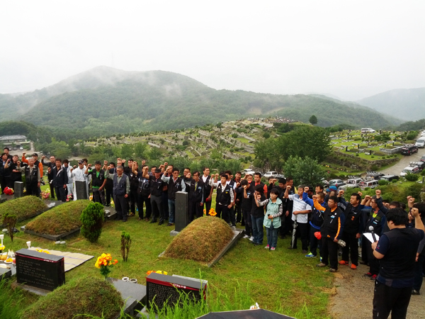 올해로 8주기를 맞이하는 김동윤열사 추모제가 9월 7일(토) 양산 솥발산 열사묘역에서 약 120여명의 간부와 조합원들이 모인 가운데 개최되었다. 이날 추모제에서 이봉주본부장은 “열사를 우리들 가슴에 묻은지 벌써 8년이라는 세월이 흘렀다, 하지만 화물노동자들의 삶은 하나도 바뀐 것이 없다. 10월 26일 화물노동자들의 인간다운 삶을 위해서 다시한번 투쟁을 결의하자”라고 추모사를 하였다.