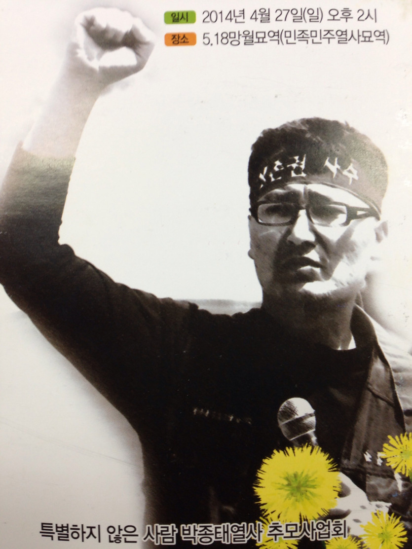 특별하지 않은 사람 박종태열사 5주기 추모제가 지난 4월 27일 광주 5.18망월묘역(민족민주열사묘역)에서 진행되었다.