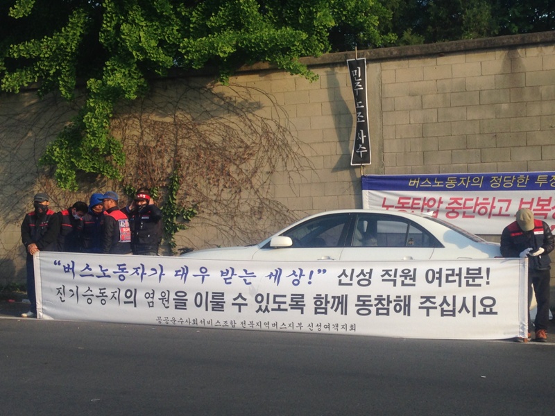 공공운수노조‧연맹 전북버스지부 신성여객지회 진기승 동지가 4월 30일 밤 자결을 시도해 1일 오전 현재 매우 위중한 상태다.
