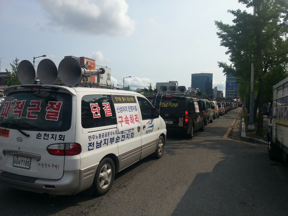 그전 7월 19일 화물연대는 ‘진기승열사 정신계승 및 노동탄압 분쇄 총력 투쟁 결의대회’에 방송차 33대와 조합원 약 100여명이 참석하였으며, 특히 화물연대는 이날 결의대회가 열리기 2시간 전부터 방송차를 3개조 나누어 선무방송을 틀고 거리의 시민들과 만나는 시간을 가졌다.