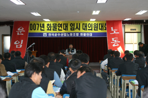 지난 10월 27일 민주노총 대전지역본부에서 화물연대 임시대의원대회가 열렸다.