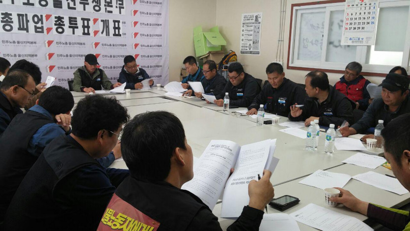지난해 12월부터 이어진 선거내홍을 겪고 제7기 지도부가 2015년 4월 14일 울산진우공업 파업현장에서 중앙집행위원회의(이하 중집)를 열고 첫 포문을 열었다. 이 자리에서 박원호 본부장은 "어떤 때보다 어렵게 지도부가 건설되었는데, 누구보다 열심히 하라는 뜻으로 받아 안겠다. 선거 과정에서 불미스러운 일이 많았는데, 최대한 단결하도록 하자"며 "혼란스러웠던 조직을 정비하는 데에 함께 노력해 주시길 바란다"고 당부했다.
