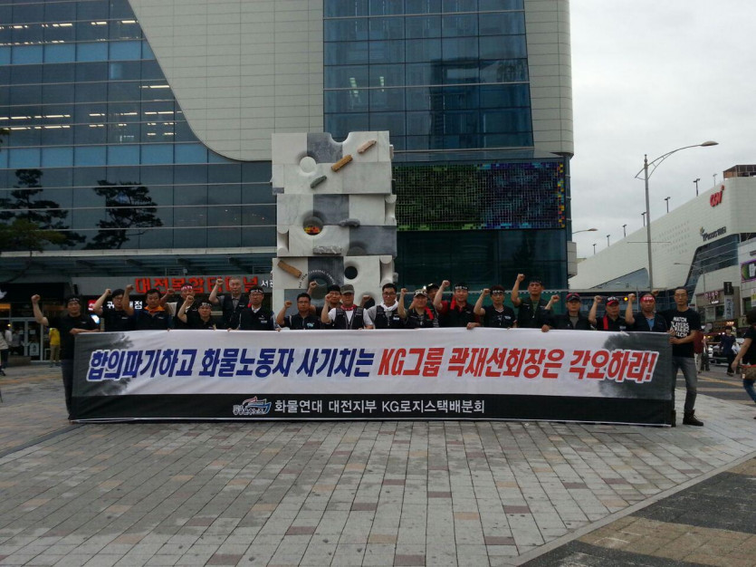 KG로지스택배 화물노동자들은 전국 각 지점에서 배송물량을 모아 허브터미널인 대전으로 운송하는 일을 하고 있다. KG로지스택배 화물노동자들은 지난 10여년 가까이 운송료 한푼 인상없이 야간 운송노동을 해왔다. 수천만원에 달하는 차량비용과 유가인상, 차량부품, 지입료, 보험료와 가족들의 생계를 감당하기 위해 야간에는 간선 택배, 주간에는 가스배달, 학원차운행, 도배등 알바를 하고 있는 실정이다.