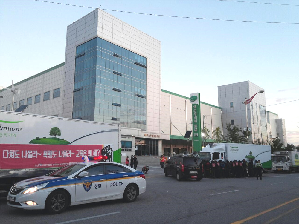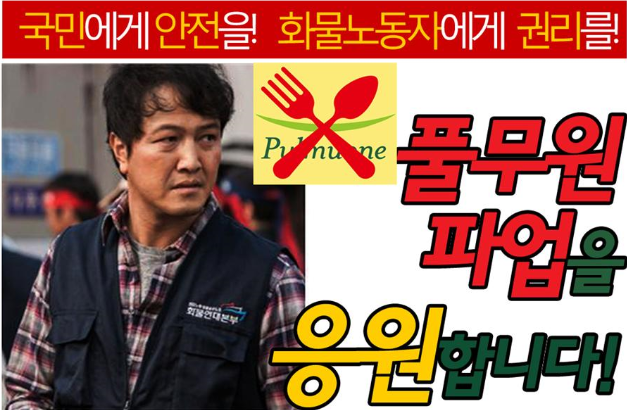 풀무원의 제품을 운송하는 화물노동자들은 화물연대 가입 이전 20년간 임금이 동결된 채 일해 왔다. 일하다 다쳐도 보상은 커녕 치료로 일하지 못하는 동안 대차 비용을 추가로 부담해야 하는 등 전근대적인 노동조건 아래 있었다. 이를 개선하고자 작년 화물연대 가입 이후 두 차례의 파업투쟁을 전개했으나, 풀무원 측은 합의서를 이행하지 않을 뿐만 아니라 노예계약서를 강요하고 노동조합 집단탈퇴와 어용노조 설립을 사주하는 등 노조탄압을 지속하고 있다.