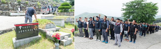 공공운수노조 석병수 부산본부장은 추모사를 통해 열사를 추모하고, “작년 노동자들이 앞장서서 역사를 바꿨다”며 인천공항 비정규직의 정규직화 등 대통령 당선 이후 변화한 상황을 설명했다. 이어서 “정권이 바뀌었지만 우리 스스로 요구하지 않으면 얻어 낼 수 없다”며 “투쟁을 통해 우리의 요구를 쟁취해야 한다”고 밝혔다.
