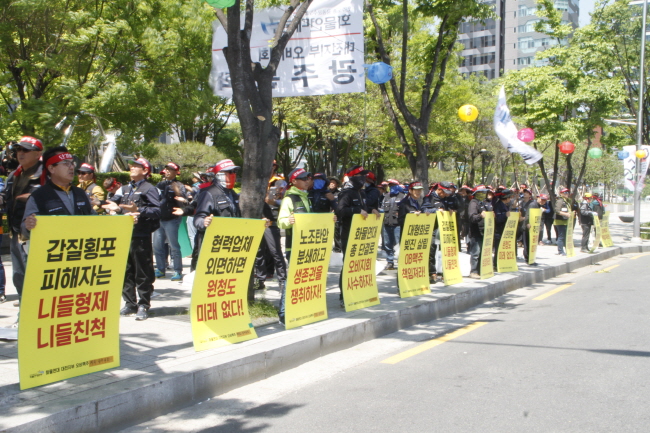 행태를 규탄하기 위해 화물연대 OB맥주지회 전체조합원은 5월 4일 서울로 상경투쟁을 진행, OB맥주 본사 앞에서 생존권쟁취를 위한