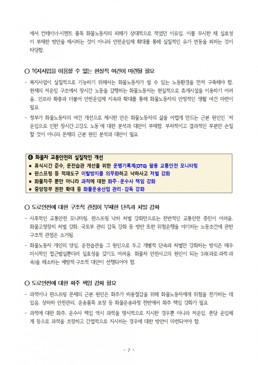 [보도자료]_대기업 화주를 위한 안전운임제 개악 반대! 화물연대 기자회견