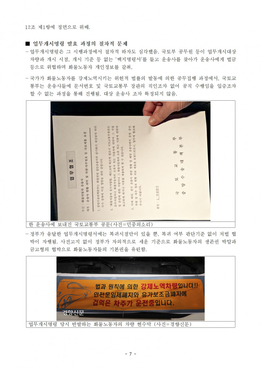 [후속보도자료]_‘노동내란의 계엄사령부’국토교통부와 ‘특고노조를 짓밟은 계엄군’공정거래위 규탄! <국토교통부ㆍ공정거래위 … 페이지 정보 작성자 화물연대본부 댓글 0건 조회 657회 작성일 25-04-14 15:18 목록 본문 이전글[후속보도자료]_노동계엄 청산! 민주주의 회복! <특수고용노동자 입법쟁취를 위한 기자회견 25.04.14 다음글[후속보도자료]_"민주주의를 향한 시민의 소망을 싣고 달립니다" 화물자동차X건설기계 대행진 출정식 25.04.14 댓글 0 댓글목록 등록된 댓글이 없습니다.