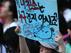 ▲ 운수노조 집행부가 '미국산 쇠고기 운송 거부'를 결정하고 조합원 의사를 묻기 위한 논의를 진행 중인 가운데 벌써부터 누리꾼들이 폭발적인 지지를 보내고 있다.사진은 지난 3일 열린 촛불시위의 모습. ⓒ프레시안