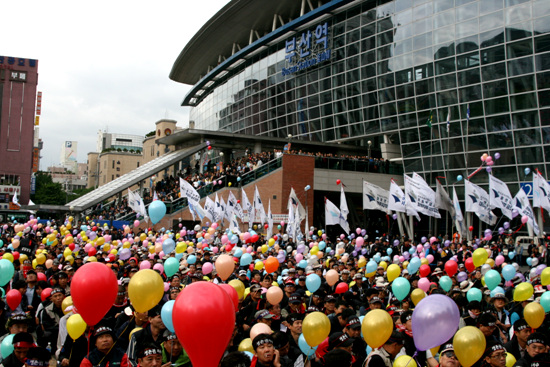 5월 10일 오후, 부산역 광장이 화물노동자의 거대한 함성으로 가득찼다. 6,000여명의 화물노동자들이 모인 가운데 열린 이날 집회는 화물연대 조합원은 물론이고 비조합원들과 시민들의 뜨거운 관심속에 치뤄졌다.