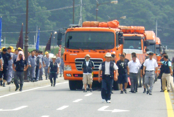 분노한 조합원들은 공장앞에서 농성을 진행하고 대체수송차량의 진입을 온몸으로 막아가며 가열차게 파업투쟁을 전개했다. 그 과정에서 7월 18일 조합원들과 이오식 대구경북지부장 등 70여명이 경찰에 연행되기도 했다. 대구경북지부와 울산지부는 연대투쟁을 진행하면서 노벨리스 물품을 운송하는 비조합원들을 설득해가며 끈질기게 싸운 끝에 마침내 만족할만한 성과를 거두었다.