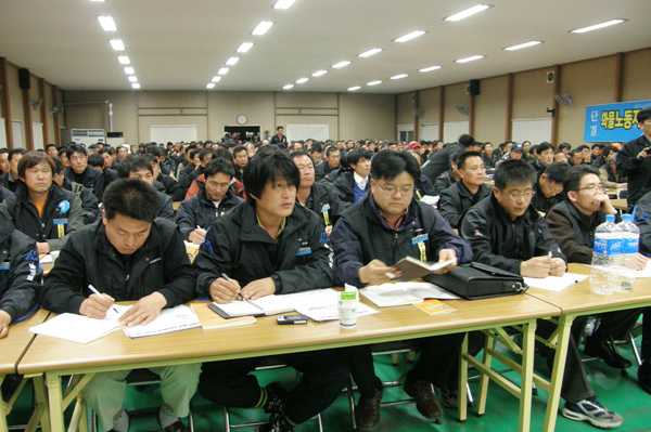 마지막 강의로 심동진 화물연대본부 사무국장의 '09년 투쟁계획과 사업계획'을 발제하는 시간이 있었다. 심동진 사무국장은 현재 화물연대의 투쟁이 이제 "문고리를 잡아당기는 단계"에 들어섰으며 올해는"문을 열고 방으로 들어서야 할때"라고 비유하며 화물연대가 보다 조직강화에 집중해야 할 전국의 주요 물류거점을 제시했다. 그리고 다시한번 조직확대의 중요성을 역설했다.