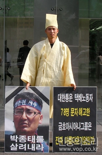 박종태. 그 이름 석자를 듣는 것 만으로도 눈물을 흘리는 사람이 있다. 대한통운 택배 해고노동자인 오종태(36)씨다. 광주에서 복직투쟁을 시작해 대전을 찍고, 서울로 올라온 지 80일. 오씨는 나머지 35명의 해고노동자들과 함께 서울에서 제 3의 투쟁을 진행하고 있었다.