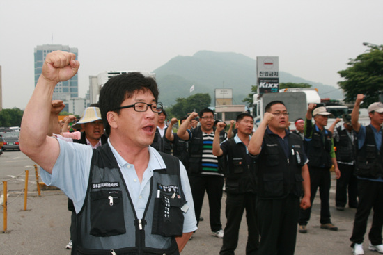 9일 선전전을 하고있는 서울경기지부 확대간부들을 양재동 화물터미널과 평택항에서 만났다. 지부, 지회, 분회 간부들로 구성된 확대간부들은 8일 출정식을 진행하고 본격적으로 선전전을 진행하고 있다.