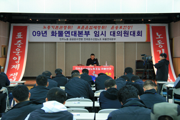 지난 14일 충북진천 청소년 수련원에서 2009 화물연대본부 임시대의원대회가 열렸다.