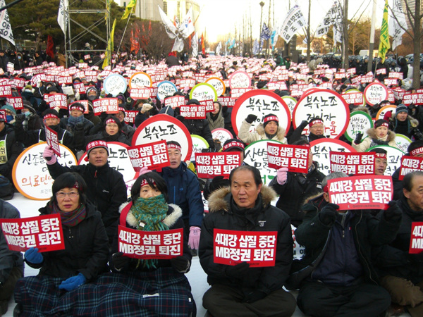 이명박 정부와 한나라당이 복수노조-전임자임금 문제 관련 노조법을 이번 국회에서 강행처리하려고 하는 가운데 민주노총은 1만 간부 상경투쟁을 전개했다.