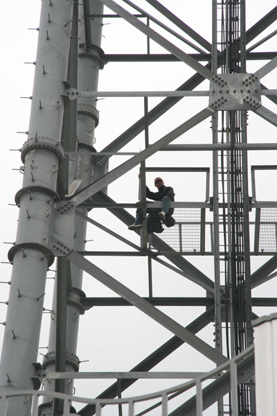 박원호 화물연대본부 부산지부장도 '표준운임제 전면도입, 운송료30% 인상'을 요구하며  부산신항에 있는 철탑에 올라갔다.