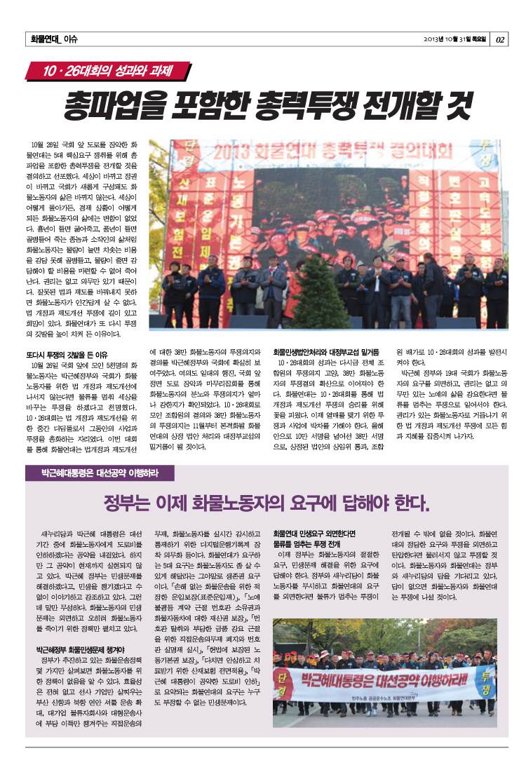 ▲10.26 대회의 성과와 과제 - 총파업을 포함한 총력투쟁 전개할 것