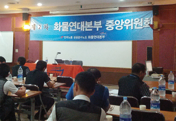 지난 8월 10일, 민주노총 전북지역본부 중회의실에서 ‘화물연대본부 2013년 2차 중앙위원회’가 열렸다. 8월 24일로 예정된 임시대의원대회에 상정될 안건과 신규 분회 승인 등 중요한 안건을 다루는 중앙위원회인 만큼, 일찍부터 의사정족수(23명)를 훌쩍 넘긴 32명의 중앙위원이 모였다. 약속된 오후 3시, “임시대의원대회를 준비하는 자리인 만큼 중앙위원들의 주의 깊은 검토와 논의가 필요하다”라는 이봉주 본부장의 당부로 2차 중앙위원회가 시작되었다.