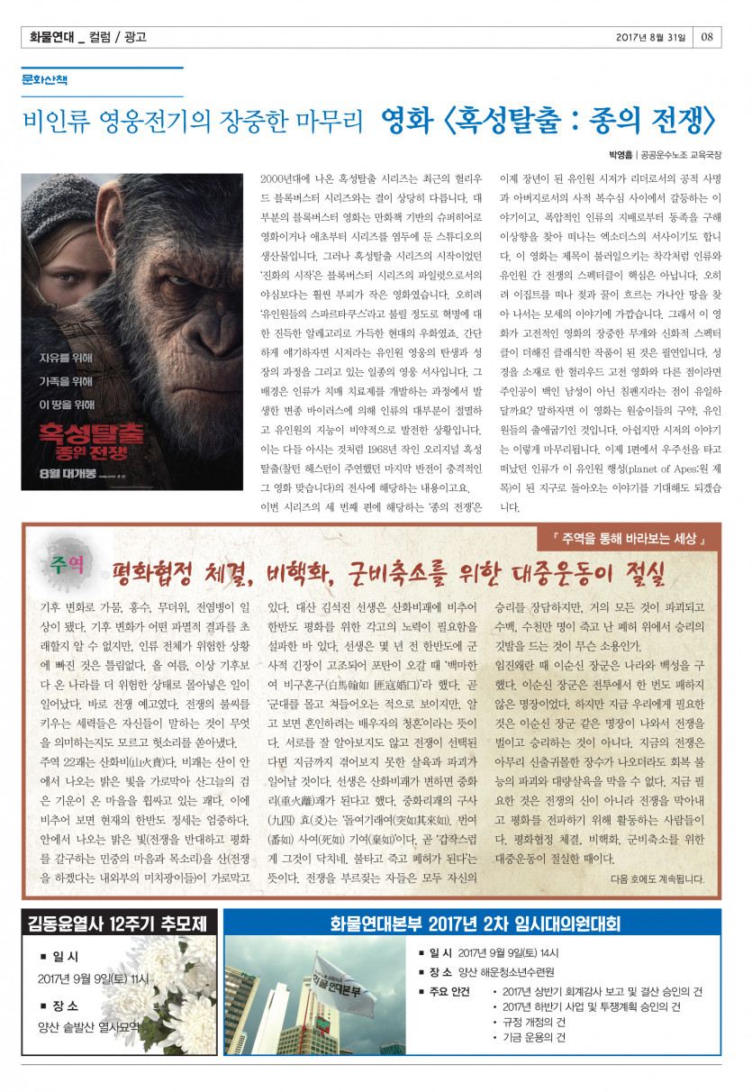 - 다음글[칼럼] 주역을 통해 바라보는 세상 - 평화협정 체결, 비핵화, 군비축소를 위한 대중운동이 절실 17.08.31