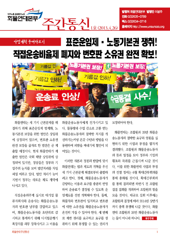 - 이전글화물연대 주간통신 2호(2013/5/3)가 나왔습니다 13.05.03