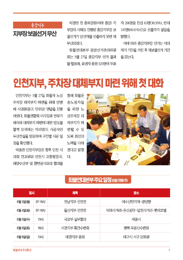 - 인천지부, 주차장 대체부지 마련 위해 첫 대화
