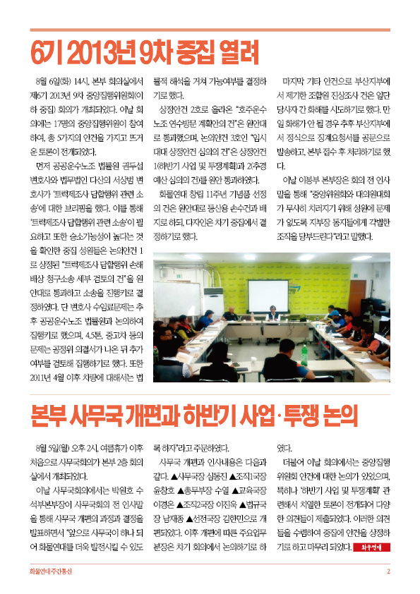 본부 사무국 개편과 하반기 사업ㆍ투쟁 논의