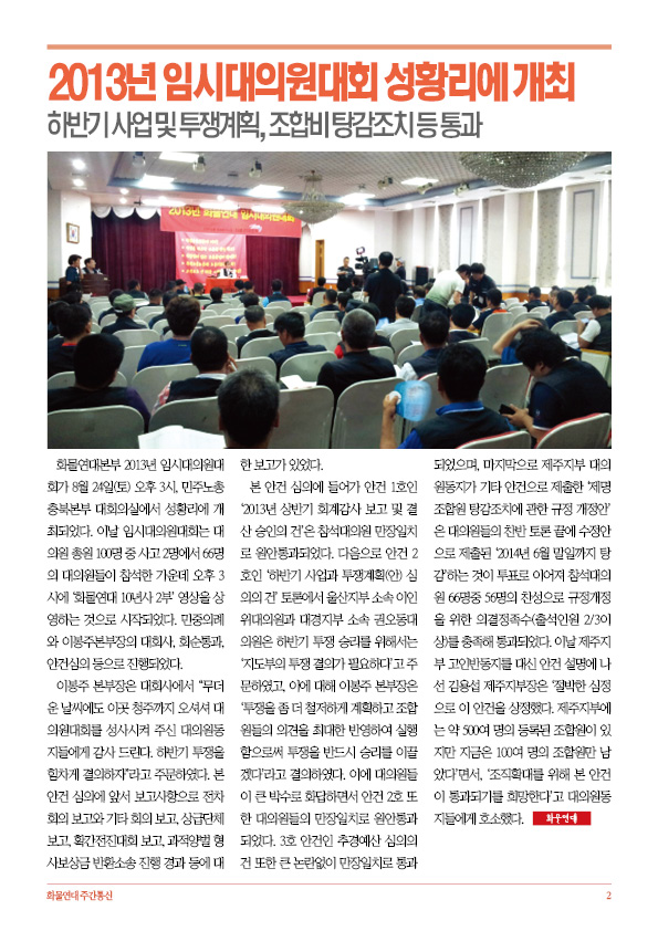 -하반기 사업 및 투쟁계획, 조합비 탕감조치 등 통과
