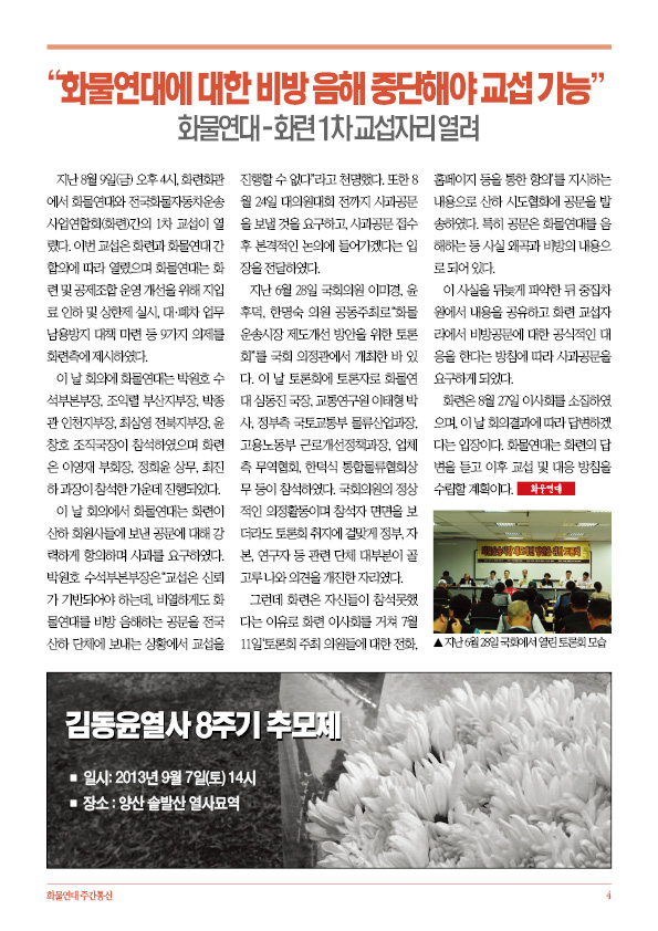 "화물연대에 대한 비방 음해 중단해야 교섭 가능"